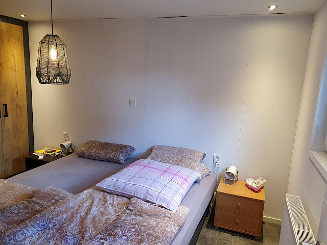 Achter de keuken bevindt zich een kleine slaapkamer met een 1 persoonsbed, hier past eventueel nog een extra bed of de ruimte kan dienen als opbergruimte of werkruimte.
