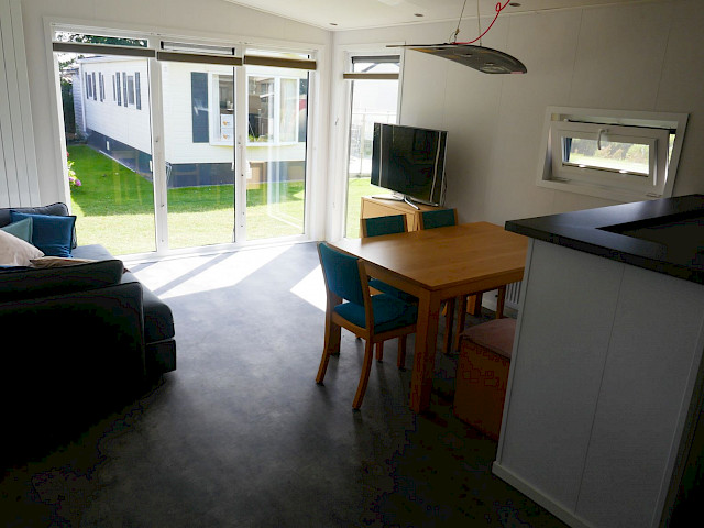 Verder is het chalet voorzien van plisseegordijnen en insecten horren en wordt compleet met meubilair geleverd.