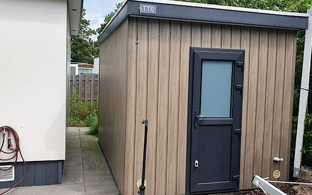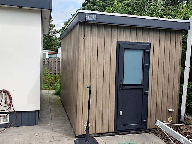 Transport van dit chalet naar uw gewenste plek kunnen wij voor u verzorgen.