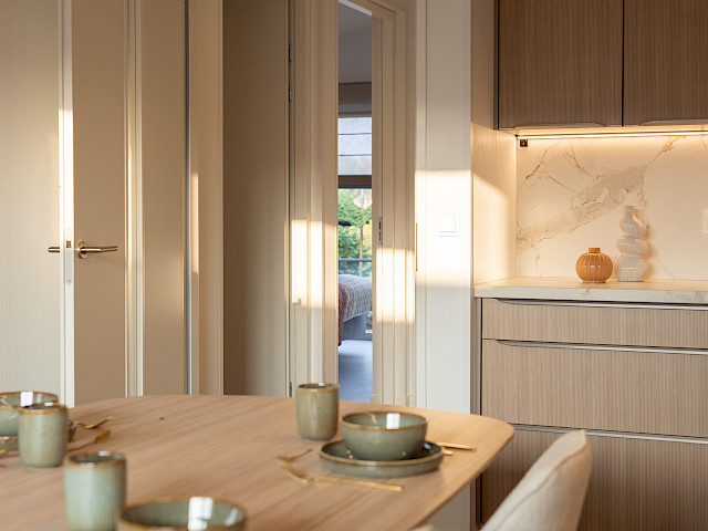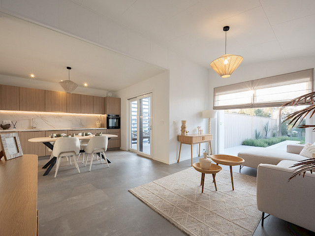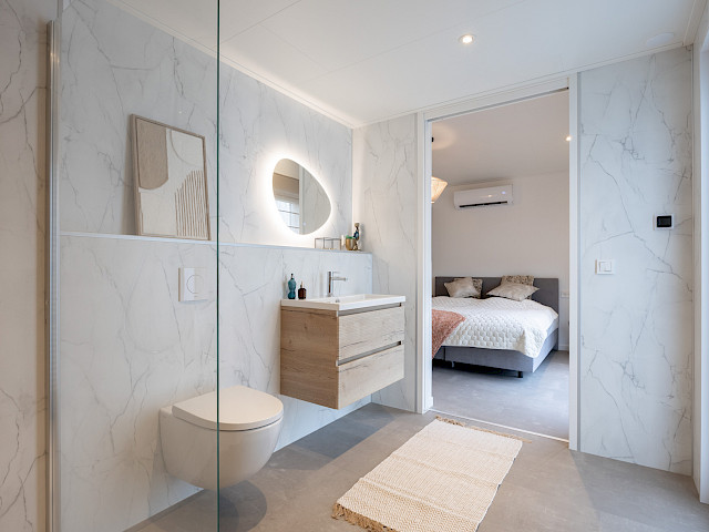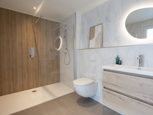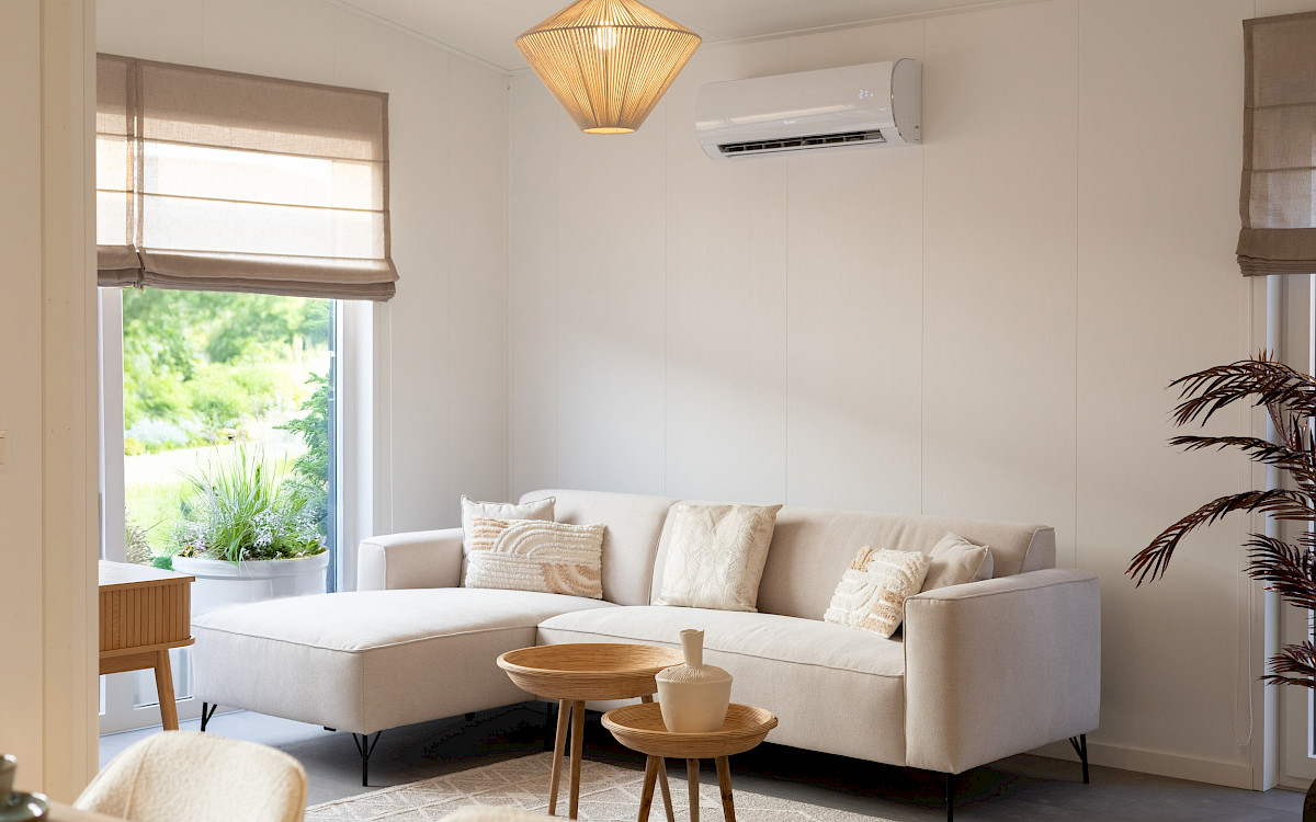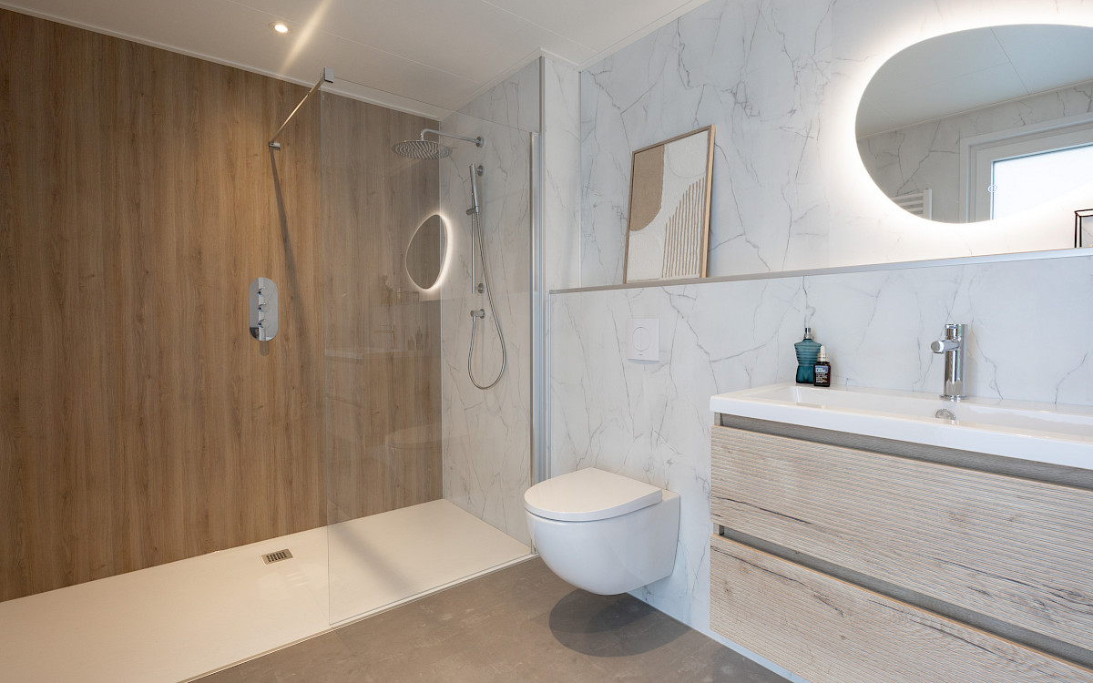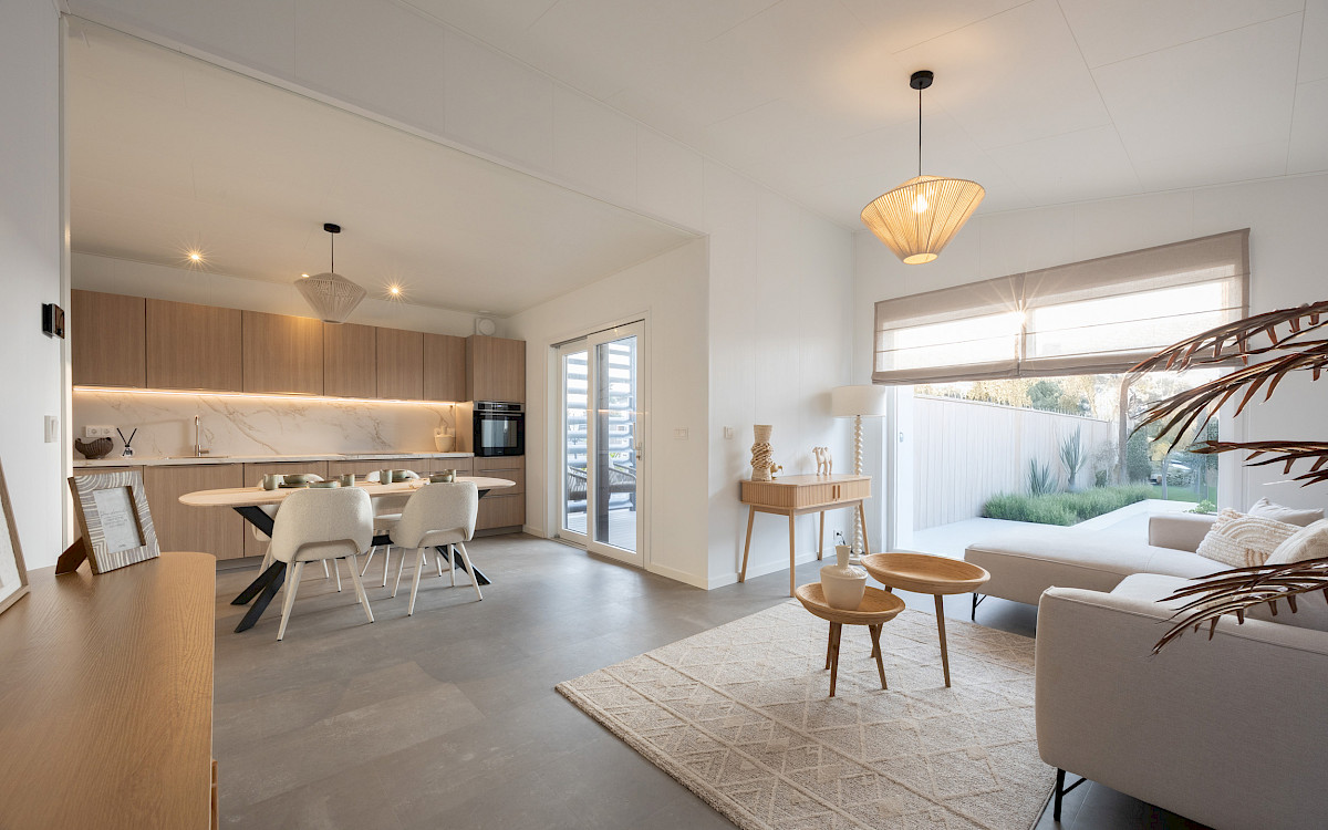 De vernieuwde MZ Lodge 2.0 bestaat uit twee afzonderlijke delen. Wat deze lodge bijzonder maakt, is de unieke indeling, de opvallende dakconstructie en het prachtig geïntegreerde terras met stijlvolle zwarte lamellen. Een combinatie van een plat dak en een lessenaarsdak geeft de MZ Lodge een luxueuze uitstraling. De geïntegreerde veranda zorgt ervoor dat het binnen- en buitenleven naadloos in elkaar overgaan. Dankzij de slimme indeling, met ruime leefruimtes en een duidelijke scheiding tussen privé- en gemeenschappelijke ruimtes, wordt optimale privacy gewaarborgd. Daarnaast is de woning efficiënt ingedeeld met royale afmetingen, 2 slaapkamers en een extra ruimte voor de wasmachine en droger.