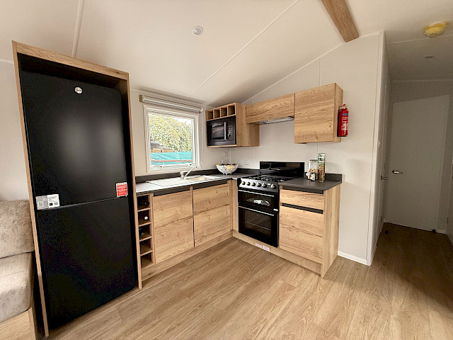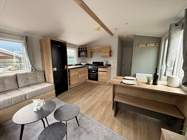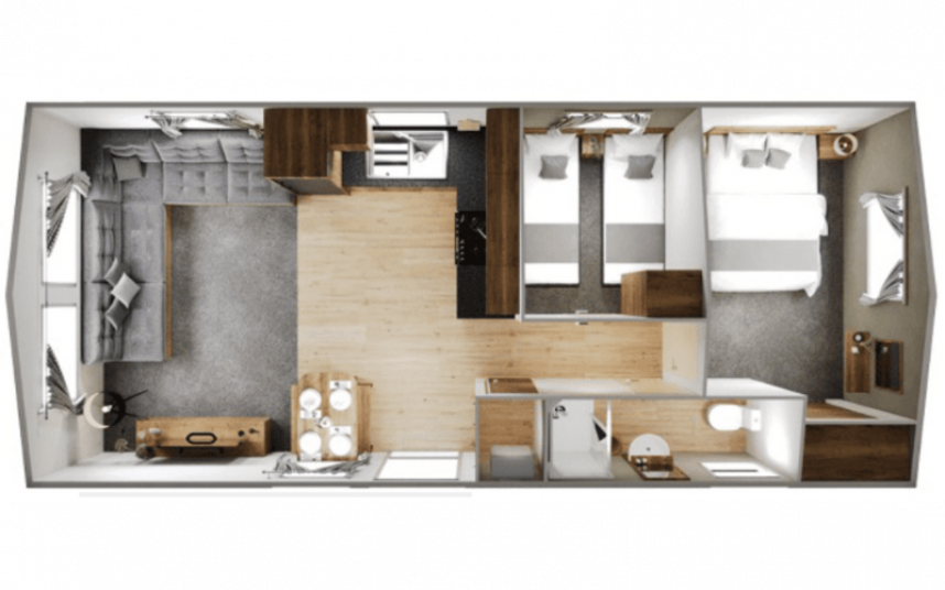 De Ellerton is zorgvuldig ontworpen om de beschikbare vloeroppervlakte optimaal te benutten, zodat er genoeg plek is voor het hele gezin. De praktische keuken in L-vorm biedt volop ruimte om samen te koken, terwijl de open leefruimte ervoor zorgt dat je altijd in contact blijft met je familie of vrienden. De slaapkamers bieden alles wat je nodig hebt: een comfortabel bed, en genoeg opbergruimte voor kleding en persoonlijke spullen.