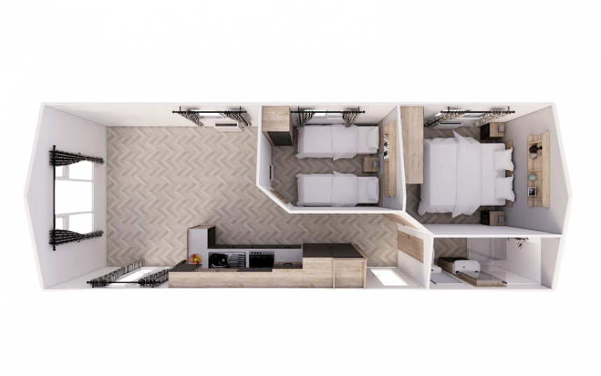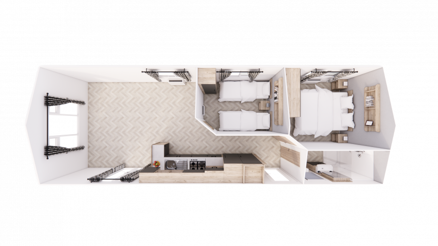 Met de Willerby Lumic haal je veel waarde in huis voor een scherpe prijs. Deze stacaravan is verkrijgbaar in drie varianten van 10, 11 en 11,50 meter. De 10 en 11 meter uitvoering beschikken over 2 comfortabele slaapkamers, terwijl de 11,50 meter variant is uitgerust met 3 slaapkamers – ideaal voor grotere gezinnen of extra gasten.