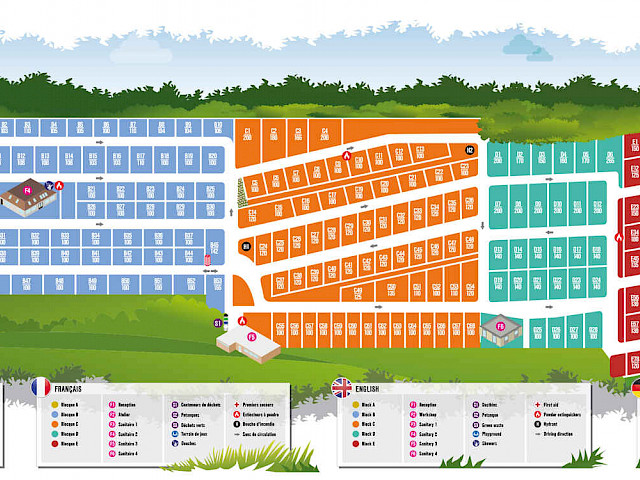 Nous vous y proposons des emplacements touristiques (par journée, au mois ou par saison) ainsi que des emplacements fixes pour tentes et caravanes. Une partie du terrain est réservée aux caravanes résidentielles. Chaque emplacement est raccordé à l’électricité, à l’eau, à la TV câblée et aux égouts.