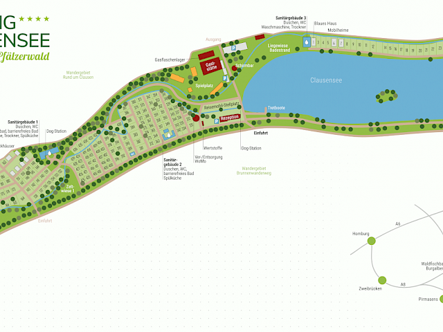 Camping Clausensee is een leuke camping in Waldfischbach-Burgalben. De camping ligt verscholen in het bos en direct aan een klein riviertje. De camping heeft zelf een groot recreatiemeer wat voor het nodige waterplezier zorgt. Camping Clausensee ligt nabij een zandstrand wat een dagje genieten in de zon makkelijk maakt.