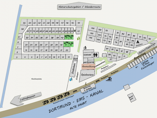 De camping is prachtig gelegen tussen de bossen en landerijen, direct gelegen aan een kanaal wat ideaal is voor watersport. De camping is voorzien van een eigen restaurant met café wat ervoor zorgt dat er altijd ook culinair te genieten is.