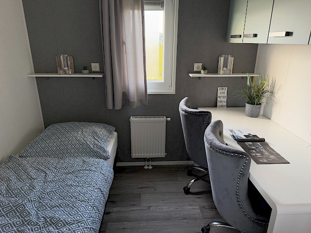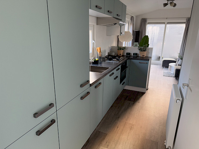 De Bergjes Everest est légèrement différent des modèles standard car ses fenêtres sont décentrées. L'espace dans le salon et l'aspect frais sont accompagnés de nombreux détails luxueux dans la cuisine ; pensez à un lave-vaisselle intégré, une cuisinière de luxe avec four/grill, et un petit bar. Les magnifiques murs d'accentuation dans le chalet le rendent complet !