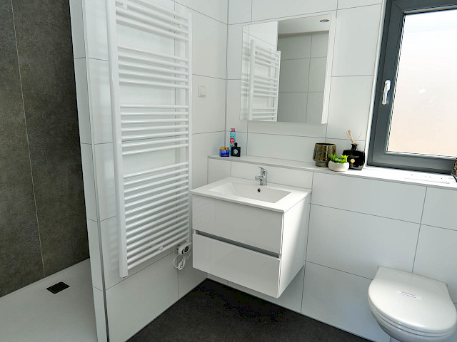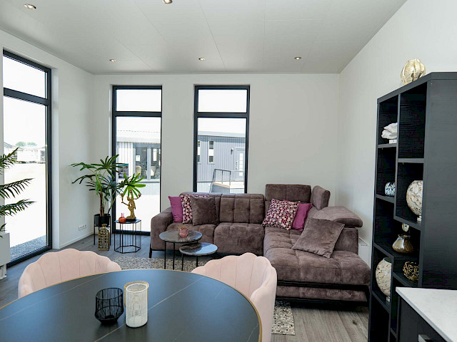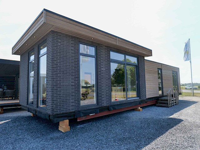 Le MZ Silvretta est entièrement électrique et présente un aspect moderne grâce à son toit en quinconce et à sa façade extérieure en briques. Le salon spacieux est doté d'une cuisine d'angle ouverte, de grandes fenêtres et d'un plafond surélevé qui, ensemble, créent beaucoup de lumière et une sensation d'espace. La chambre et la salle de bains sont situées dans la partie inférieure de la maison. De plus, ce chalet dispose d'une porte coulissante dans le salon, de portes-fenêtres dans la chambre, d'une grande buanderie et d'un placard pour la machine à laver.