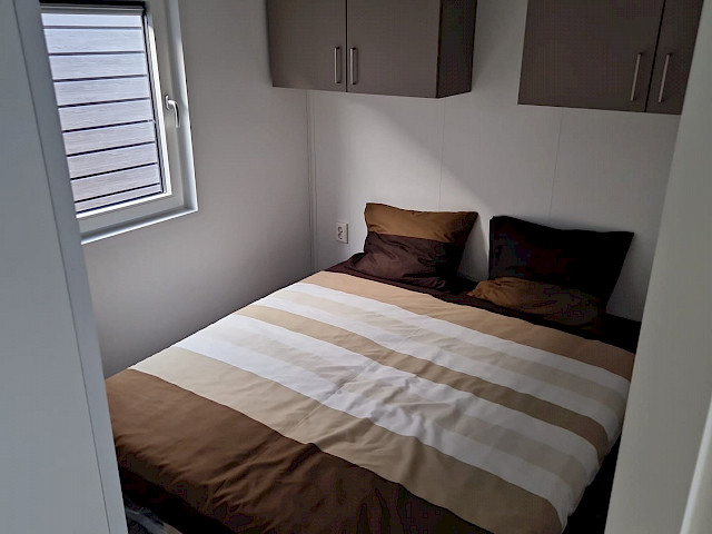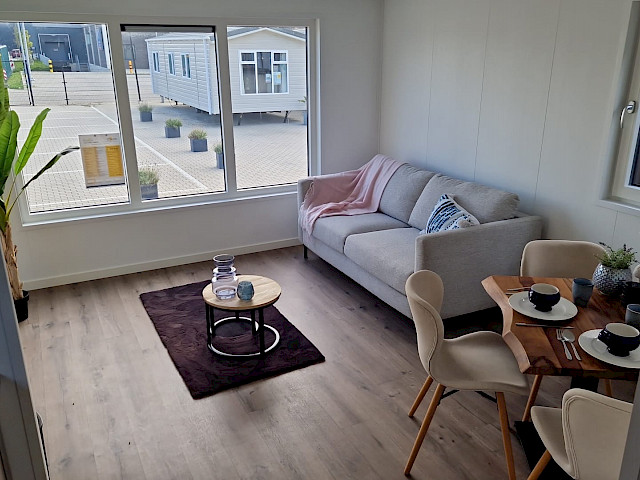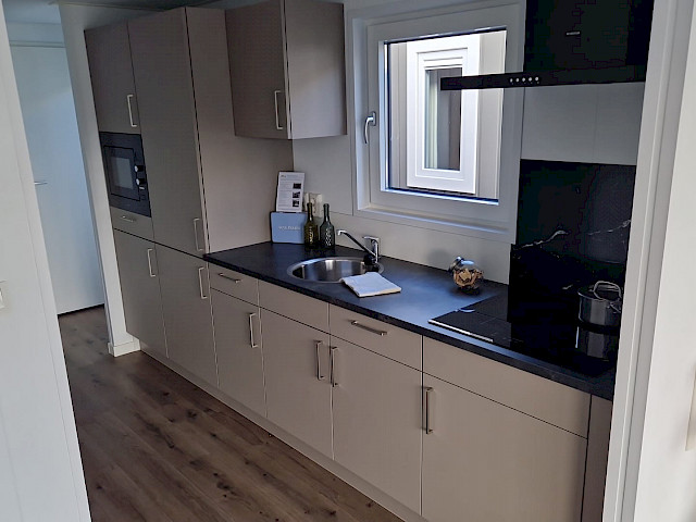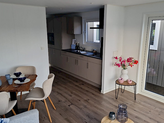 Le Bergjes Vulture a une cuisine bien équipée, un salon spacieux et confortable avec des portes-fenêtres donnant sur le jardin et, bien sûr, deux belles chambres et une salle de bains. Vous pouvez personnaliser ce modèle à votre guise, par exemple en ajoutant des options de luxe supplémentaires. De plus, le Vulture est un chalet Bergjes Green Label. Cela signifie qu'il est très bien isolé, avec des murs extérieurs d'une épaisseur allant jusqu'à 12 cm, mais aussi qu'il est entièrement équipé d'électricité. De plus, ce modèle est entièrement construit dans notre usine neutre en énergie aux Pays-Bas, ce qui nous permet d'offrir la véritable qualité néerlandaise avec la garantie du prix le plus bas.
