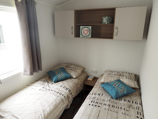 Lorsque vous choisissez l'ensemble de meubles Willerby Lumic, vous obtenez des rideaux gris dans les chambres, des rideaux panachés dans le salon, une table de salle à manger avec 4 chaises, un canapé-lit, un hocker, un meuble TV, une table basse et un cadre de lit dans la chambre principale.