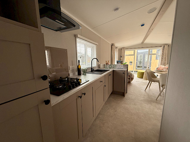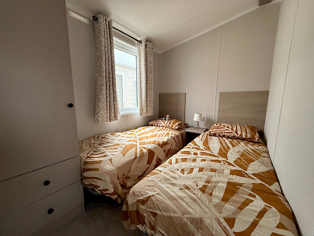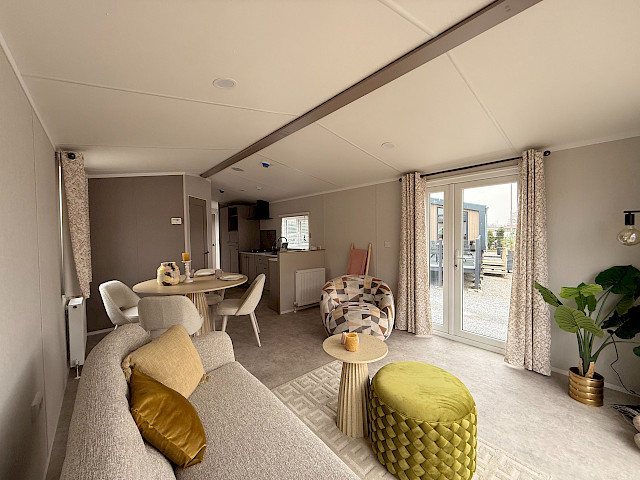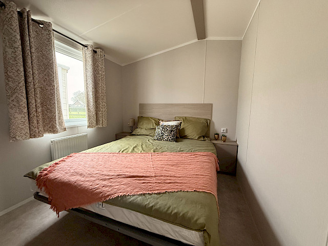 Le mobil-home Ruby offre un design soigné et un grand confort. La cuisine est équipée d'un réfrigérateur et d'un congélateur intégrés, ainsi que d'une cuisinière à gaz à 4 feux. Le salon est lumineux et spacieux grâce aux grandes fenêtres et à la porte-fenêtre, et il est équipé d'une connexion TV. La chambre principale dispose d'un lit double confortable, d'une armoire spacieuse et du chauffage. En outre, la deuxième chambre dispose de deux lits simples et d'une armoire, ce qui la rend idéale pour les invités. La salle de bains est équipée d'une cabine de douche, de toilettes, d'un lavabo et du chauffage. Le Ruby est entièrement terminé et prêt à l'emploi. Un choix élégant et fonctionnel !