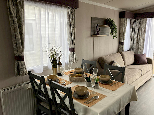 Le Swift Bordeaux est aménagé avec beaucoup de style, un hébergement de vacances qui est non seulement tendance, mais aussi très pratique. Le salon du Bordeaux est très lumineux grâce aux grandes portes coulissantes à l'avant du chalet. Il dispose également d'une cuisine en U luxueuse avec de beaux détails et un mobilier confortable. Le Bordeaux est disponible avec une belle salle de bains. Le Swift Bordeaux est le chalet de loisirs idéal pour créer de beaux souvenirs avec vos proches.