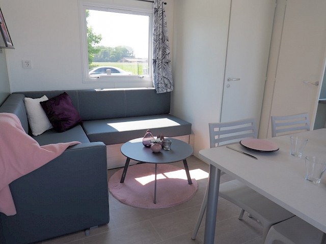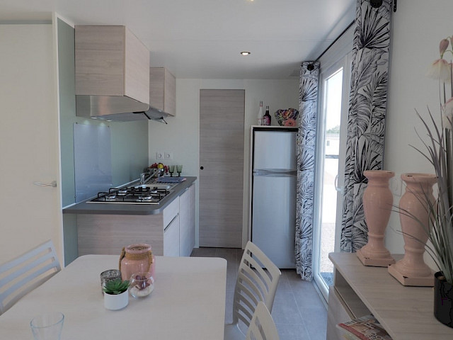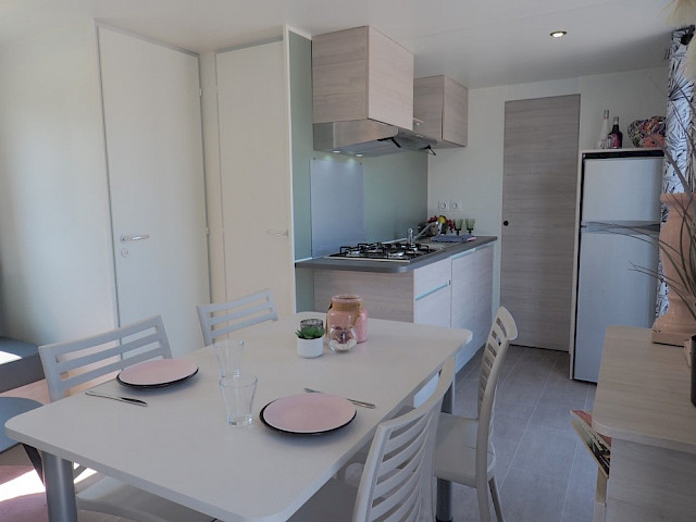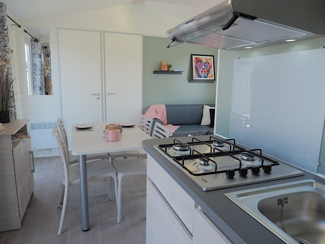 Le Trigano Evo-29 se caractérise par une disposition fonctionnelle et agréable grâce à un grand salon et une cuisine ouverte sur l'extérieur.