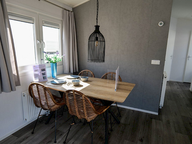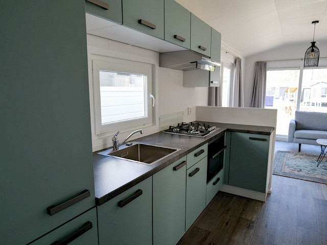 De Bergjes Everest is net even anders dan de standaard modellen doordat zijn raampartij uit het midden geplaatst is. De ruimtelijkheid in de woonkamer en de frisse look en feel gaan gepaard met veel luxe details in de keuken; denk aan een geïntegreerde vaatwasser, een luxe kooktoestel met oven/grill, en een klein barretje. De mooie accent wanden in het chalet maken hem helemaal af!