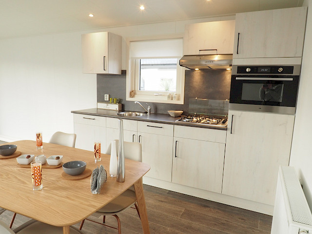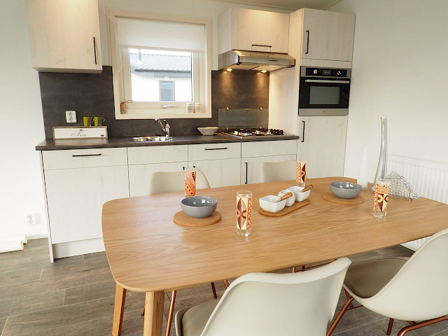 De PK- Chalets Duinhuis L is een zeer ruim model vanwege de luxe L-vorm. Door deze vorm is de Duinhuis heel ruim en geeft het zowel binnen en buiten een prettige sfeer. De grote ramen in de voorgevel zorgen voor veel licht in de woonkamer. Alle kamers in de Duinhuis zijn makkelijk toegankelijk, erg ruim en zeer modern ingericht.