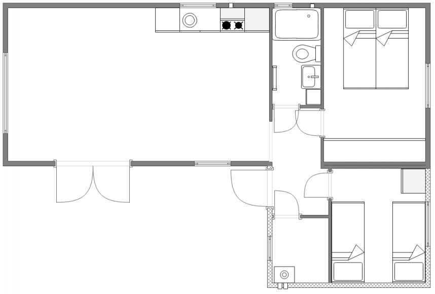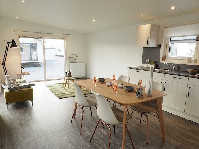 De PK- Chalets Duinhuis L is een zeer ruim model vanwege de luxe L-vorm. Door deze vorm is de Duinhuis heel ruim en geeft het zowel binnen en buiten een prettige sfeer. De grote ramen in de voorgevel zorgen voor veel licht in de woonkamer. Alle kamers in de Duinhuis zijn makkelijk toegankelijk, erg ruim en zeer modern ingericht.