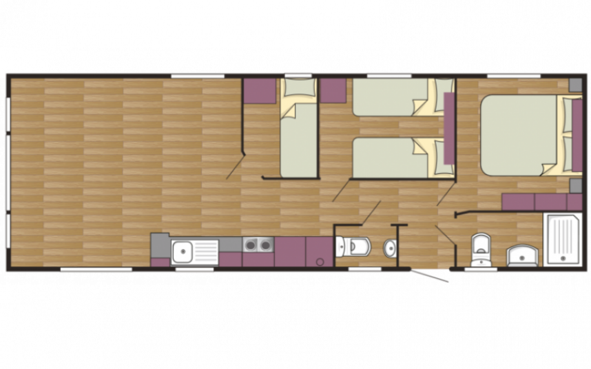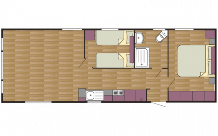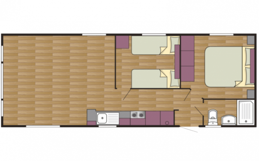Op bovenstaande afbeeldingen wordt volgend model getoond: 1100 x 370 - 2 slaapkamers.