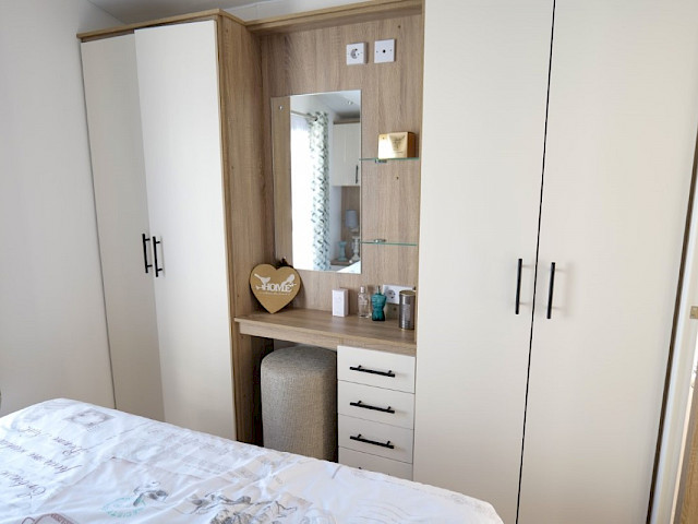 De Jura is een nieuw model. Kenmerkend aan dit model is de grote schuifdeur in het midden van de stacaravan. De Jura beschikt over een centrale woonkamer met een zeer moderne en complete U-keuken. Standaard beschikt de Jura over twee ruime inloopkasten waar u al uw spullen in kunt opbergen. Beide slaapkamers bevinden zich aan weerszijde van het chalet. Dit kan de ideale uitkomst zijn voor gezinnen die overdag graag samen zijn en ‘s avonds meer privacy wensen.