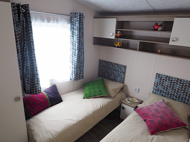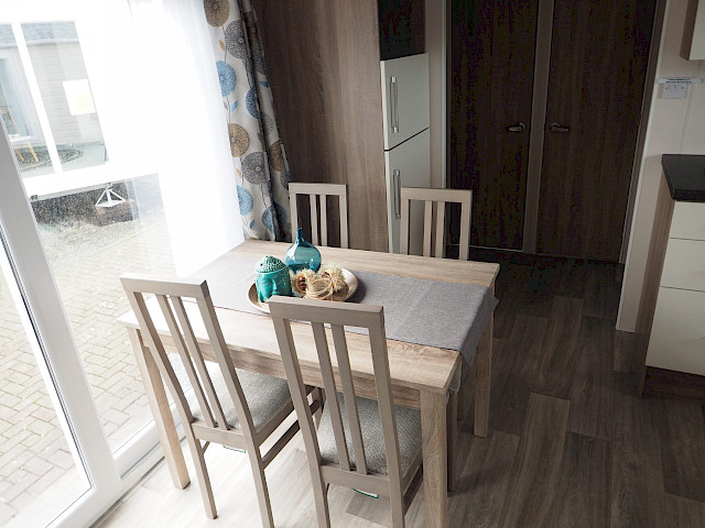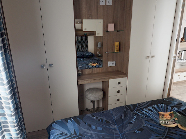 De Jura is een nieuw model. Kenmerkend aan dit model is de grote schuifdeur in het midden van de stacaravan. De Jura beschikt over een centrale woonkamer met een zeer moderne en complete U-keuken. Standaard beschikt de Jura over twee ruime inloopkasten waar u al uw spullen in kunt opbergen. Beide slaapkamers bevinden zich aan weerszijde van het chalet. Dit kan de ideale uitkomst zijn voor gezinnen die overdag graag samen zijn en ‘s avonds meer privacy wensen.