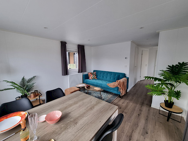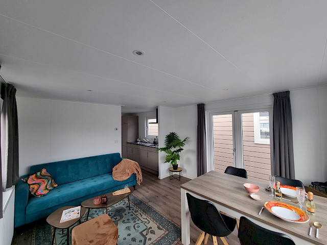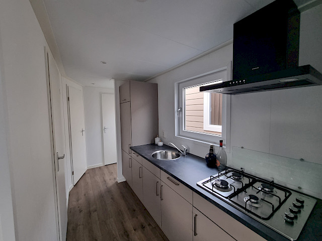 De Vulture heeft een rijk uitgeruste keuken, een gezellige ruime woonkamer met openslaande tuindeuren en natuurlijk twee fijne slaapkamers en een badkamer. Dit model kunt u nog naar wens aanpassen door bijvoorbeeld extra luxe opties toe te voegen. Verder is de Vulture een Green Label chalet. Dat betekent dat hij goed geïsoleerd is met buitenwanden van wel 12 cm dik, maar ook dat hij volledig elektrisch is uitgerust. Verder is dit model gebouwd in onze compleet energie neutrale fabriek in Nederland waardoor we echte Nederlandse kwaliteit kunnen bieden met de laagste prijs garantie.