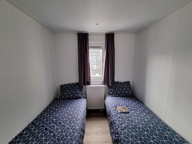 Op bovenstaande afbeeldingen wordt volgend model getoond: 1000 x 400 - 2 slaapkamers, met toegepaste optie: 4 bedden en gordijnen op rails. Met een totaal prijs van €66.092.