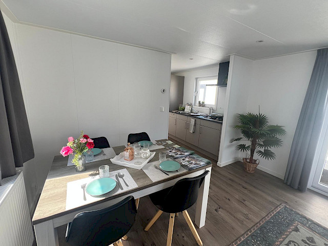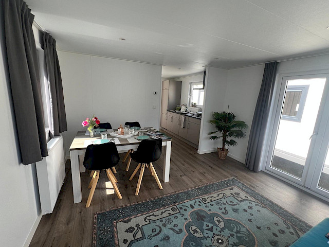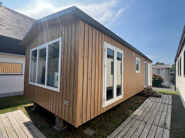 De Vulture heeft een rijk uitgeruste keuken, een gezellige ruime woonkamer met openslaande tuindeuren en natuurlijk twee fijne slaapkamers en een badkamer. Dit model kunt u nog naar wens aanpassen door bijvoorbeeld extra luxe opties toe te voegen. Verder is de Vulture een Green Label chalet. Dat betekent dat hij goed geïsoleerd is met buitenwanden van wel 12 cm dik, maar ook dat hij volledig elektrisch is uitgerust. Verder is dit model gebouwd in onze compleet energie neutrale fabriek in Nederland waardoor we echte Nederlandse kwaliteit kunnen bieden met de laagste prijs garantie.