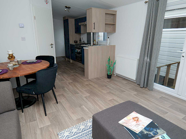 De Bergjes Woodline. Een trendy chalet door de combinatie van Woodlook buitenbekleding met antraciet kozijnen voor een zeer aantrekkelijke prijs. Daarnaast is de Bergjes Woodline extra geïsoleerd met wanden van 12 cm dik en vindt u binnen alle luxe die u nodig heeft tijdens een ideale vakantie. Een rijk uitgeruste hoekkeuken met geïntegreerde vaatwasser en koelvriescombinatie. In de woonkamer vindt u veel ruimte en lichtinval door de openslaande tuindeuren en grote raampartijen. Verder kunt u denken aan inloopkasten in de grote slaapkamer en een luxe badmeubel in de heerlijke badkamer.