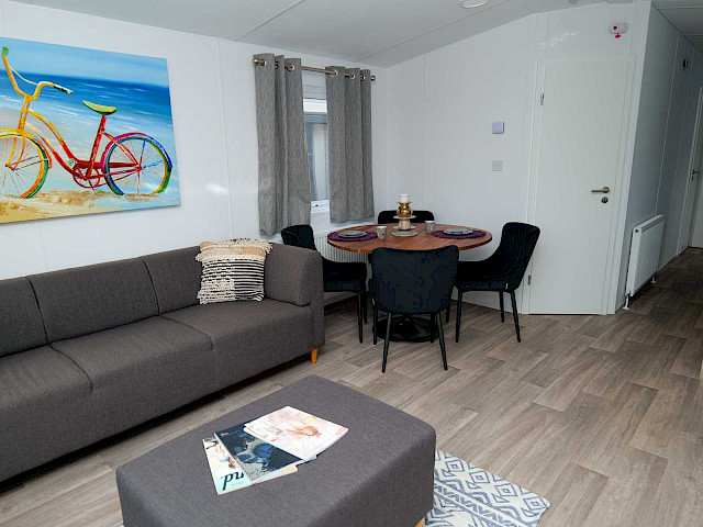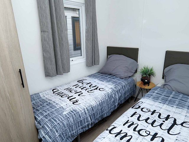 Na de populaire WoodRidge, Volente Special en Rushmore hebben we nu een nieuw model met luxe houtlook buitenbekleding toegevoegd aan ons ruime assortiment; De Bergjes Woodline. Een trendy chalet door de combinatie van Woodlook buitenbekleding met antraciet kozijnen voor een zeer aantrekkelijke prijs. Daarnaast is de Bergjes Woodline extra geïsoleerd met wanden van 12 cm dik en vindt u binnen alle luxe die u nodig heeft tijdens een ideale vakantie. Een rijk uitgeruste hoekkeuken met geïntegreerde vaatwasser en koelvriescombinatie. In de woonkamer vindt u veel ruimte en lichtinval door de openslaande tuindeuren en grote raampartijen. Verder kunt u denken aan inloopkasten in de grote slaapkamer en een luxe badmeubel in de heerlijke badkamer.