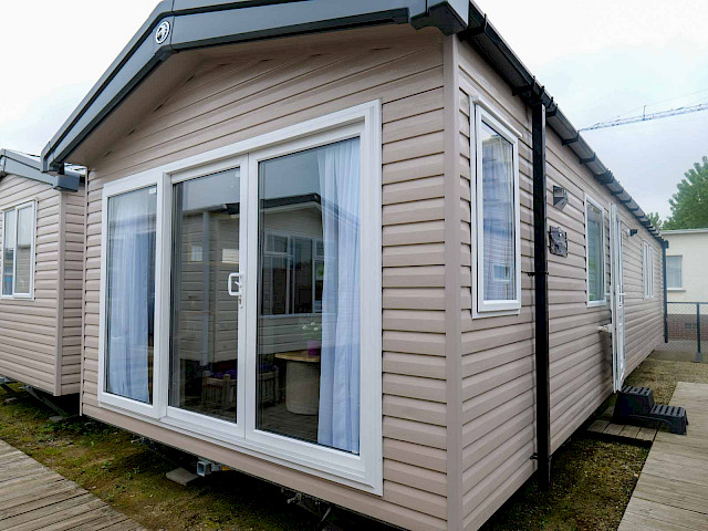 Let op: Deze stacaravan is binnnekort te bezichtigen op onze vestiging in Nederland. Het showmodel is nu afgeprijsd van €71.730 voor €67.495! De genoemde prijs is exclusief transport en plaatsen aan de Belgische Kust.