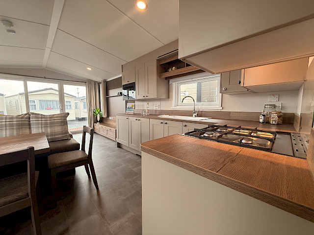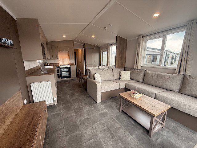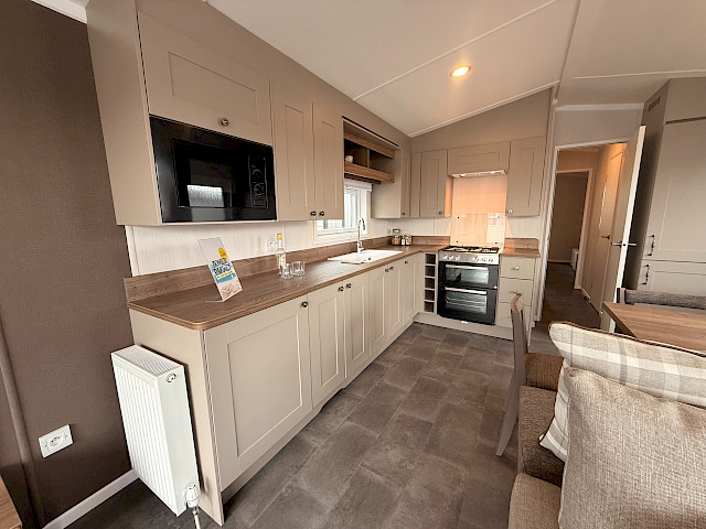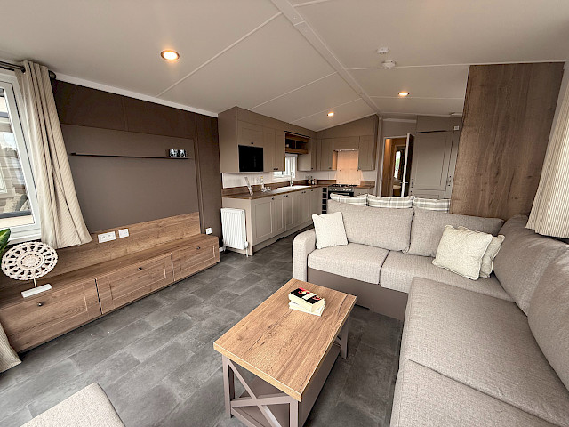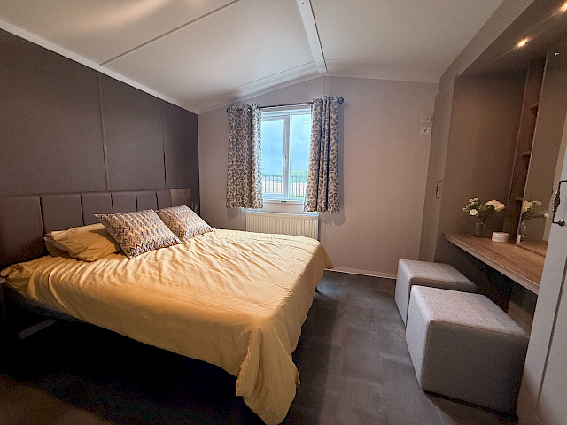 De Swift Morlaix biedt de perfecte balans tussen rustiek charme en eigentijdse luxe. Het stijlvolle farmhouse-interieur straalt warmte en gezelligheid uit, terwijl de neutrale kleuren in combinatie met de verfijnde ‘Truffle Brown’ houtaccenten een tijdloze uitstraling geven.