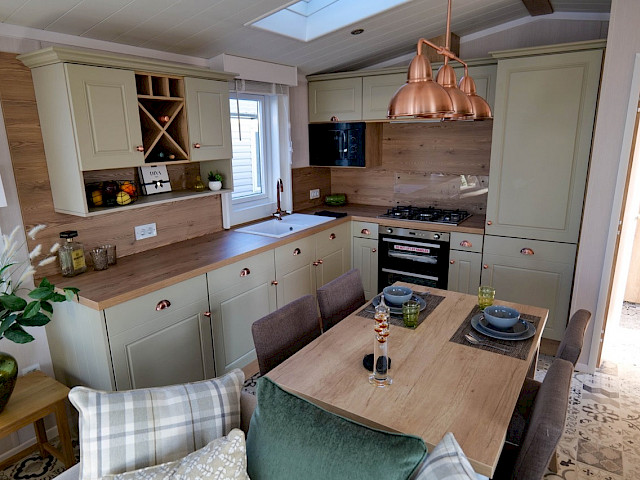 De Swift Vendee Lodge is een zeer luxe vakantiewoning van binnen en van buiten. Dit model is gebouwd volgens woningbouwspecificaties, is super goed geïsoleerd, en heeft een dakraam en prachitge tuindeuren. Wanneer je de Swift Vendee Lodge betreedt kom je binnen in een ruime hal met kapstok en bankje. Links kom je in het luxe woon- eetgedeelte terecht. De sofa's zijn heerlijk zacht van materiaal en bieden zo het ultieme comfort. Verder vind je in de woonkamer een Bluetooth MP3 systeem, en een elektrsiche sfeerhaard. De prachtige keuken met koperen details is rijk ingericht met o.a. een vaatwasser, een wasmachine en een geïntegreerd wijnrek! Dit vakantiechalet heeft 2 slaapkamers en 2 volledige badkamers. Op deze manier kun je met gemak met zijn vieren op vakantie.