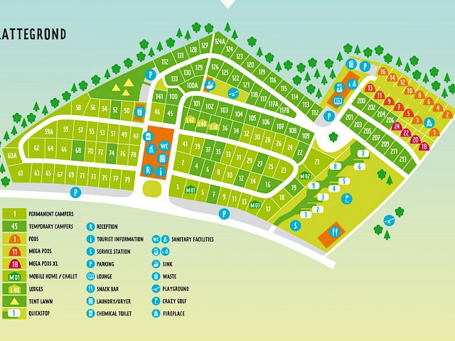 De camping is en echte natuurcamping, kom tot rust en geniet van de groene omgeving. Als een echte gezinscamping heeft de camping een mooie speeltuin, sportvelden en een actief animatieteam. Na een actieve dag is er altijd wat lekkers te halen in de snackbar van de camping.