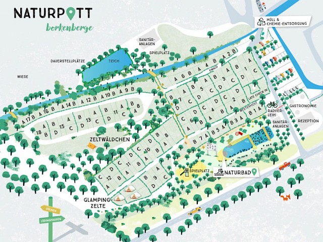 Camping Naturpott Borkenberge, de camping waar u kunt doen alsof u thuis bent. De camping staat geheel in het teken van ontspanning. De standplaatsen zijn ruim en omgeven door groen.